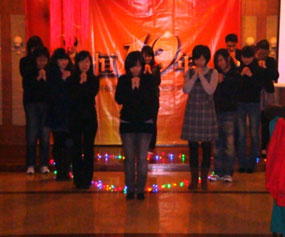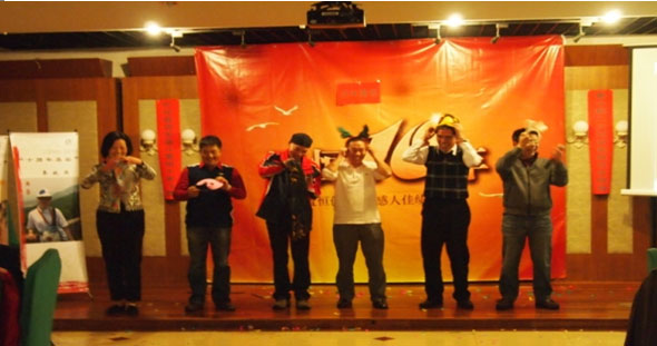 精彩纷呈的晚会,创意层出不穷,动感的开场曲《PAPARAZZI》把气氛推向热烈,《朋友》、《开心的玛瑙》、《真心英雄》、《水手》一曲曲振奋人心的歌曲引起了全场不约而同的演唱,舞蹈《小小》是音乐与舞蹈的完美结合,那一刻,那一刹那的感觉是无法比拟的。跨部门组合节目《嫦娥征婚》则诙谐幽默,让人忍俊不禁,当传说中“罗密欧”撑着一把破伞在风雨中忧伤的思恋着自己的情人的时候,更是让全场都笑翻了。内勤人员精心准备表演的手语舞《感恩的心》真挚感人,仿佛在无声地传递着感恩之心……股东们别具匠心的《金刚舞》出场更是晚会的压轴戏,将晚会推向新一轮高潮。