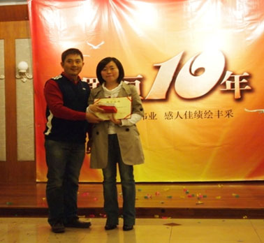 在股东致辞完后,依次进行了十周年员工嘉奖、十周年征文颁奖活动。