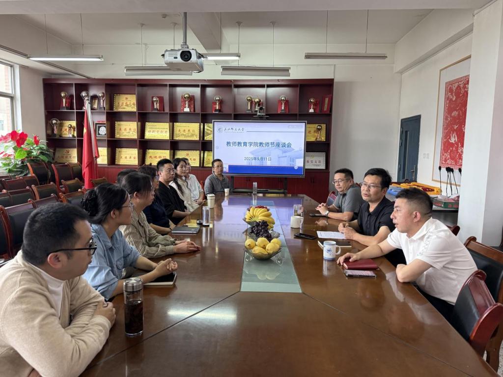 9月11日下午,教师教育学院在学院507会议室举行庆祝第41个教师节座谈会。学院领导班子成员、新入职教师及各系主任参加座谈会。
