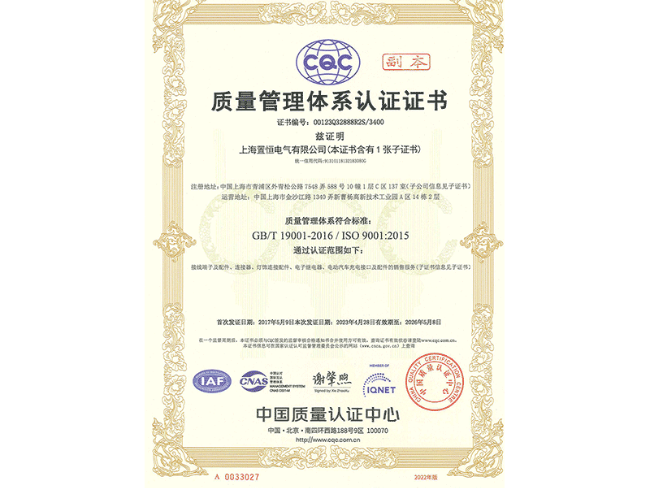 ISO9001证书(质量管理体系认证证书)